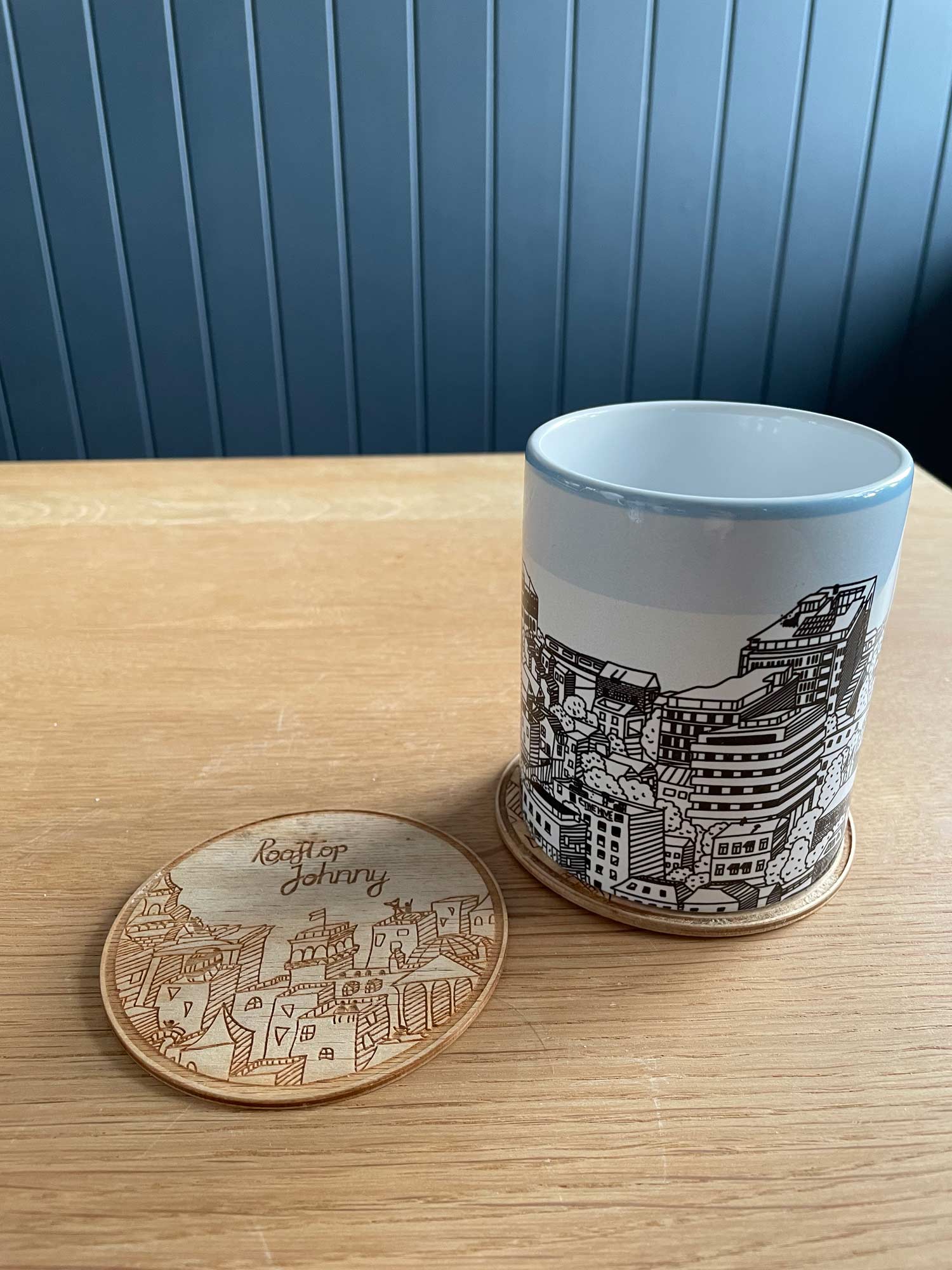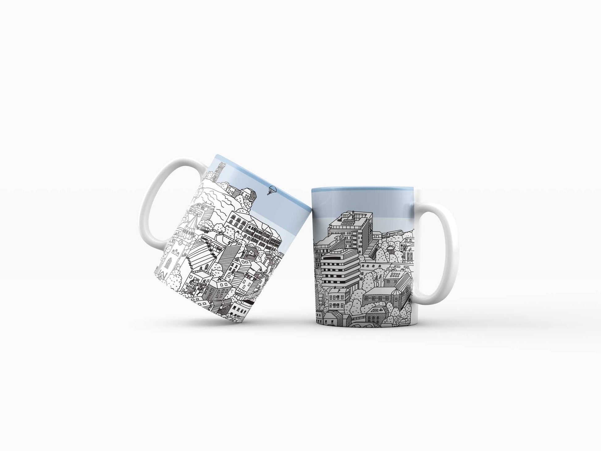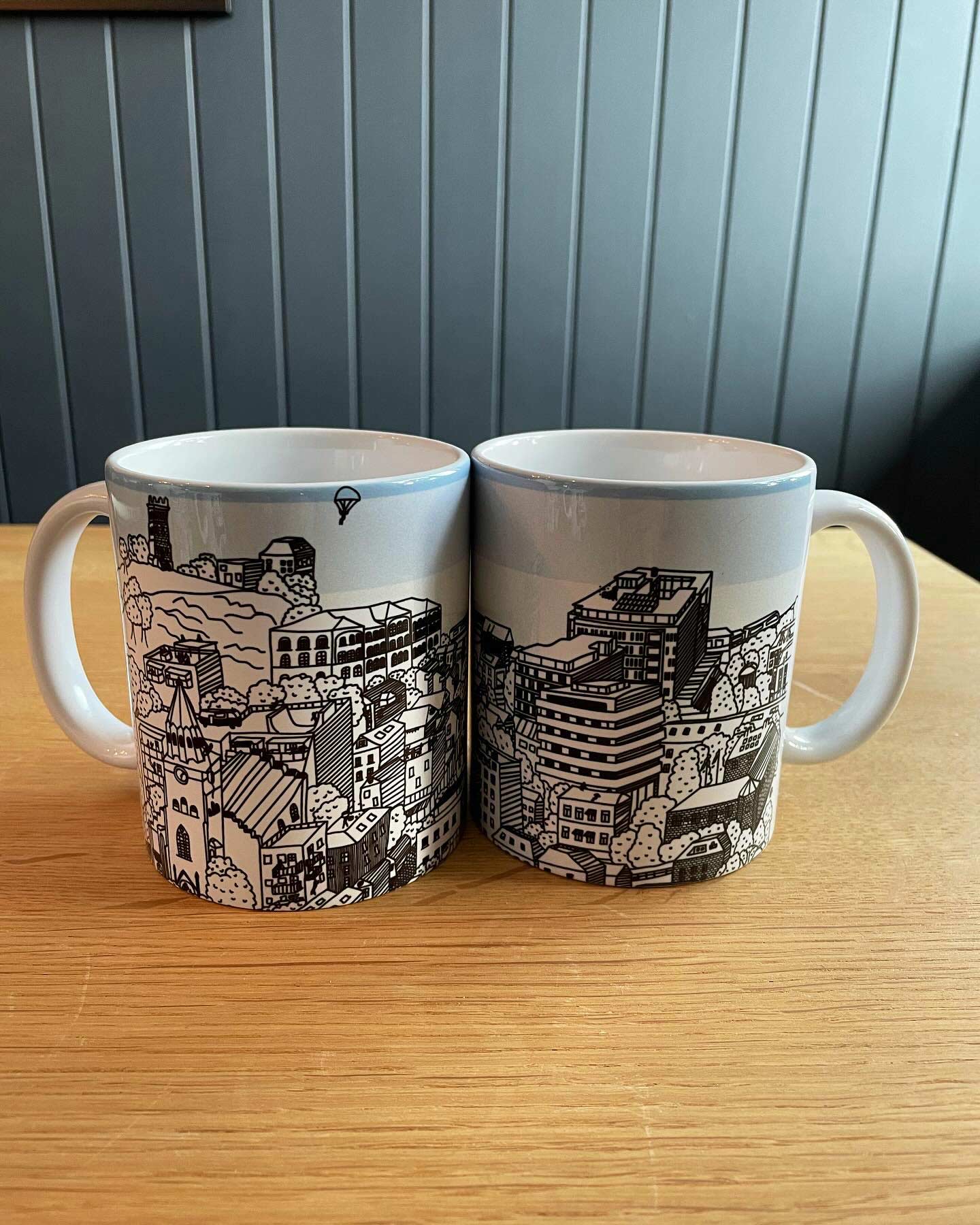 Take a break with our Tønsberg Coffee Mug! This unique mug features a beautiful hand-drawn illustration of the rooftops of Tønsberg, one of Norway's oldest cities, created by our proud Norwegian illustrator at Rooftop Johnny.